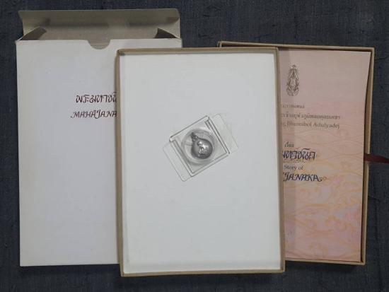 เหรียญพระมหาชนก เนื้อเงินพิมพ์เล็ก ปี 2542 พร้อมหนังสือกล่อง สภาพสวยเดิม