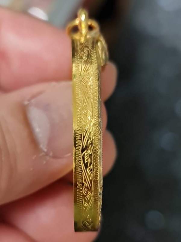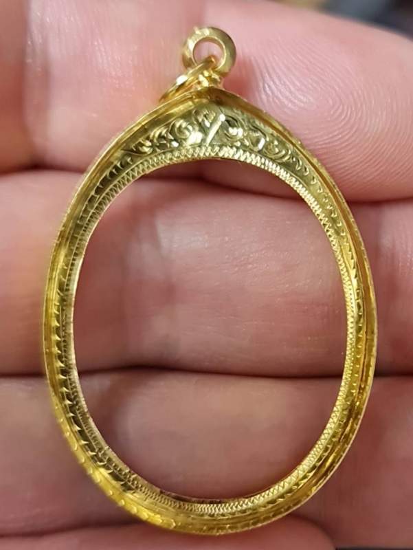 (((กรอบมือ2 ทองคำแท้))) ใส่เหรียญรูปไข่คณาจารย์ทั่วไป น้ำหนักทอง 3.29กรัม กรอบสภาพสวยๆครับ