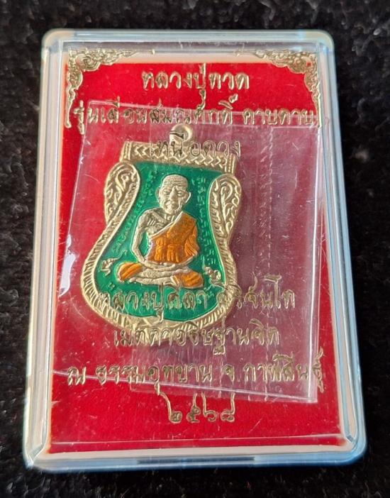 วัดใจ หลวงปู่ทวด หลวงปู่ศิลา เมตตาอธิษฐานจิต รุ่นเลื่อนสมณศักดิ์ เหนือดวง เนื้อทองทิพย์ ลงยา No.97 |