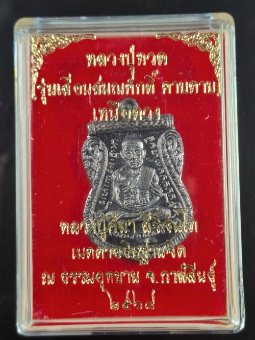 เหรียญเสมาหลวงปู่ทวด รุ่น เลื่อนสมณศักดิ์ คาบดาบ เหนือดวง ปี 2568 หลวงปู่ศิลา อธิษฐานจิต เนื้อทองแดงรมดำ |