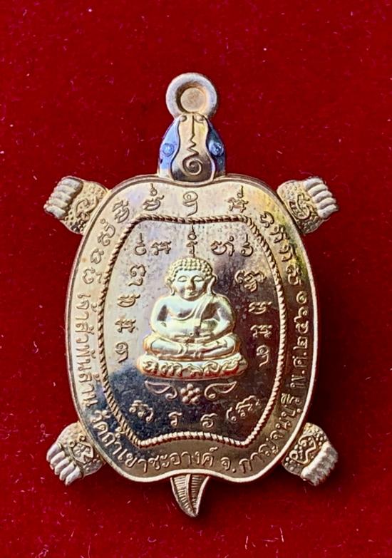 เหรียญเต่าเจ้าสัวพันล้าน หลวงปู่หลิว วัดถ้ำเขาชะอางค์ จ.กาญจนบุรี เนื้อชนวนหน้ากากทองคำ ตาฝังเพขรแท้ (กรรมการ ) มีจาร