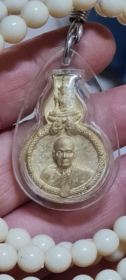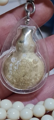 เหรียญหล่อน้ำเต้าดูดทรัพย์เนื้อชนวน หลวงตาม้า วัดถ้ำเมืองนะ(พุทธพรหมปัญโญ) พร้อมรอยจารหลวงตาม้า เลี่ยมจากวัดพร้อมประคำ