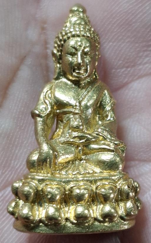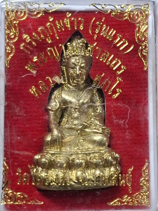 พระกริ่งภูกุ้มข้าวรุ่นแรกหลวงปู่หา สุภโร วัดไตรมิตร จ.กาฬสินธุ์ ตอกโค๊ต เนื้อทองเหลือง กล่องเดิม |