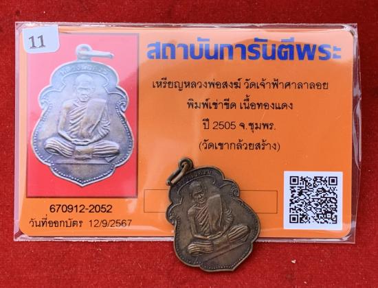 เหรียญหลวงพ่อสงฆ์ วัดเจ้าฟ้าศาลาลอย จ.ชุมพร พ.ศ. 2505 พิมพ์เข่าขีด เนื้อทองแดง (วัดเขากล้วย จัดสร้าง ) |