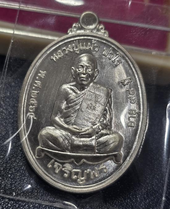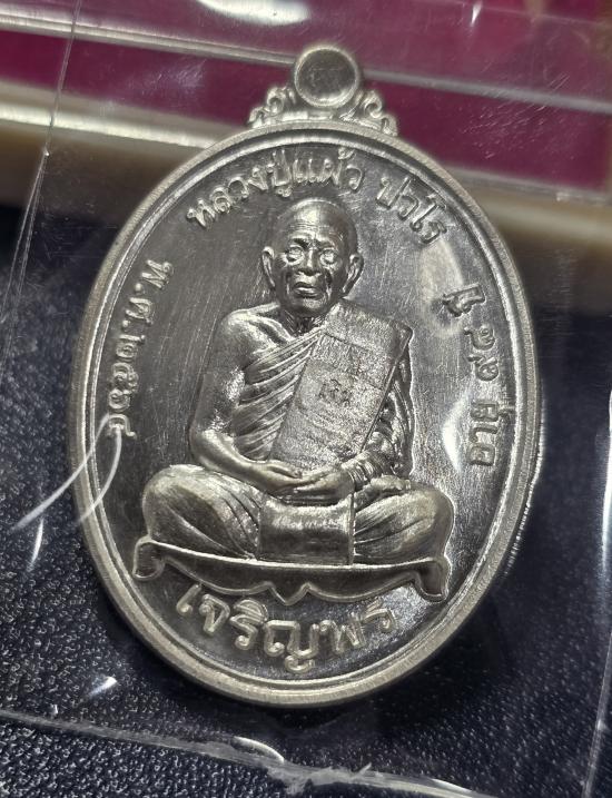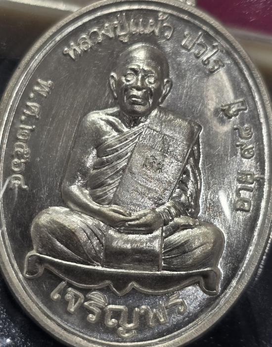 เหรียญเจริญพรล่าง หลวงปู่แผ้ว วัดรางหมัน เนื้อเงิน no.4147 สวยๆ พร้อมกล่อง