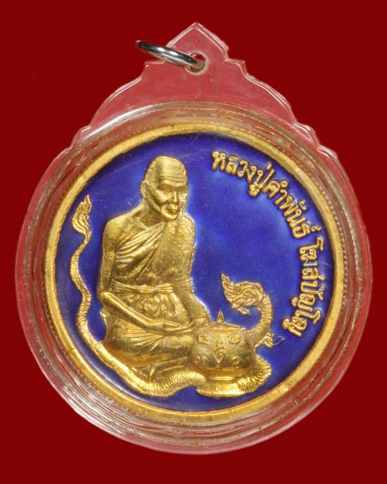 หลวงปู่คำพันธ์ วัดธาตุมหาชัย จ.นครพนม เหรียญบาตรน้ำมนต์ กะหลั่ยทองลงยาสีน้ำเงิน