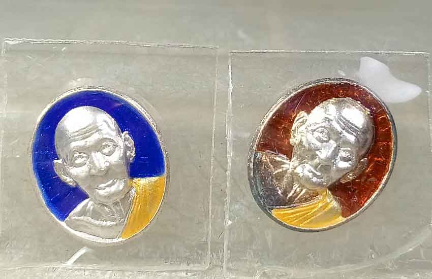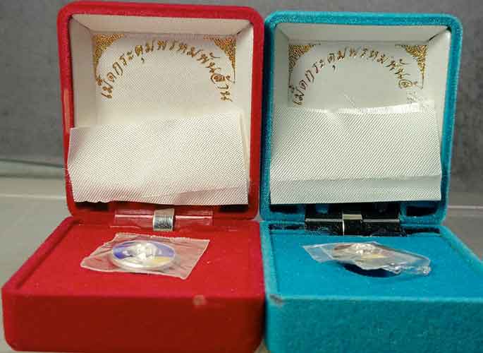 เหรียญเม็ดกระดุม เงินลงยา 2 องค์ หลวงปู่ดู่ วัดสะแก จ.อยุธยา รุ่นพรหมพันล้าน ปี2562 ออกวัดเทพกุญชร จ.อยุธยา หลวงพ่อเสือดำ ปลุกเสก กล่องเดิม