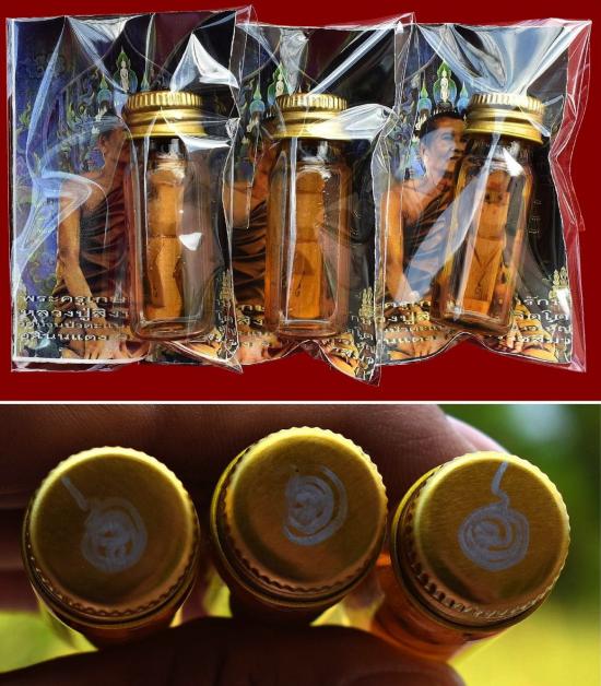 ชุด 3 ขวด...กุมารทองคะนองทรัพย์ในน้ำมัน ปี 2559 หลวงปู่สิงห์ วัดบ้านป่าตะแบง จ.นครราชสีมา พร้อมซองรูปเดิมจากวัด |