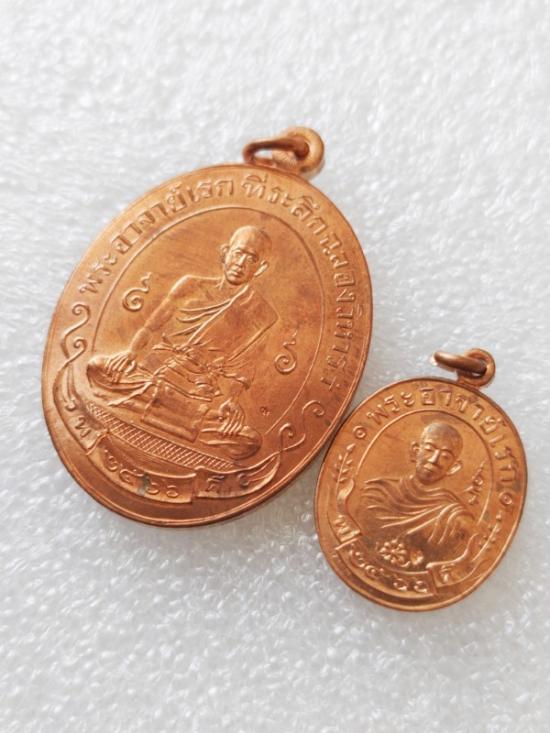 วัดใจแพ็คคู่...เหรียญฉลองวิหาร พระอาจารย์อดิเรก วัดหนองทราย เนื้อทองแดงผิวไฟ พิมพ์ใหญ่กับพิมพ์เล็ก |