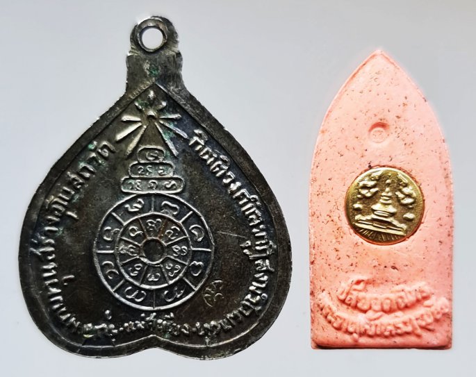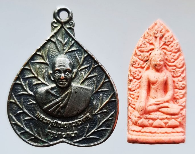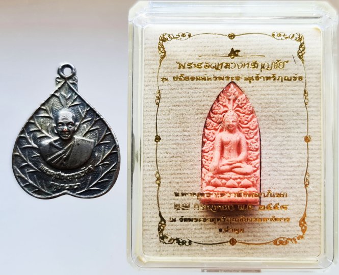 ชื่อพระเครื่อง << วัดใจ >> เหรียญใบโพธิ์ ครูบาผาผ่า + พระรอดหลวงหริภุญชัย รุ่นปลียอดฉัตรพระธาตุเจ้าหริภุญชัย