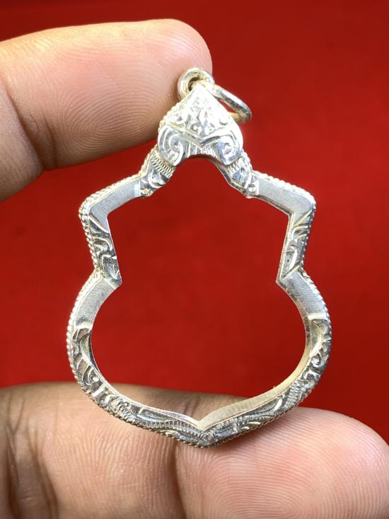 มือสองกรอบเงินใส่เหรียญน้ำเต้าหลวงปู่ทวด กว้าง 2.6 สูง 3.2 น้ำหนัก 6.8 กรัม |