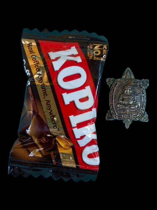 เหรียญเต่าจิ๋ว ไม่ทราบที่ ตัวเหรียญขนาดเล็ก ทรงเต่า ด้านหน้าเป็นรูปองค์พระนั่งสมาธิ ด้านหลังลงอักขระและยันต์เต็มพื้นที่ งานหล่อโลหะ ผิวผ่านการใช้งาน มีคราบอายุและรอยตามกาลเวลา ขนาดเหมาะสำหรับพกติดตัว แขวนห้อย หรือใส่กระเป๋าสตางค์ เหมาะกับสายสะสมเหรียญยันต์ขนาดเล็กและสายบูชาความหมายมงคล