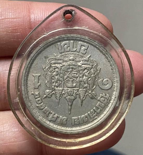 เหรียญ 1บาท รัชกาลที่ 9 หลังตราแผ่นดิน ปี ๒๕๐๔ หายาก สวยมาก เลี่ยมโยราณ