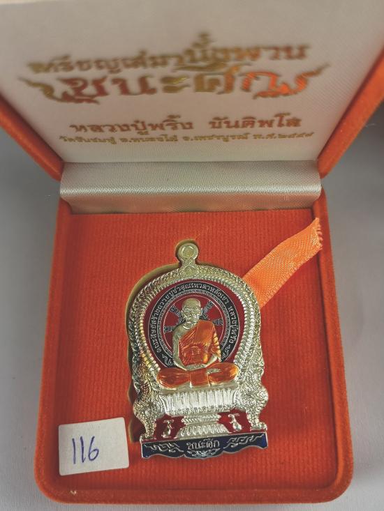 เหรียญนั่งพาน ชนะศึก หลวงปู่พริ้ง วัดซับชมพู่ ปี58 เนื้อเงินลงยา เบอร์ 116 พร้อมกล่องเดิมครับ (เหรียญหนัก19.52กรัม)
