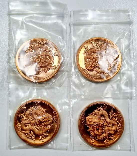 เหรียญพญามังกรทองจักรพรรดิ์ วัดไตรมิตรวิทยาราม เนื้อชนวนทองแดง 4เหรียญ |