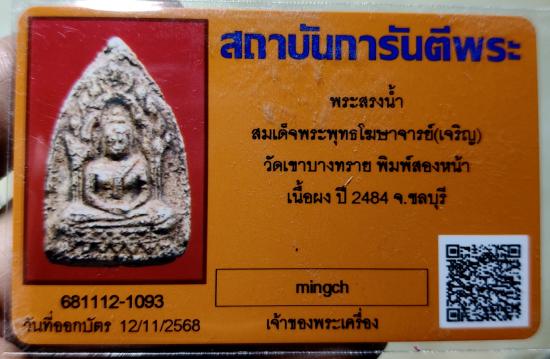 **100** พระสรงน้ำรุ่นแรกพิมพ์สองหน้า สมเด็จพระพุทธโฆษาจารย์ (เจริญ) วัดเขาบางทราย ปี 2484 จ.ชลบุรี พร้อมบัตรรับรองสบายใจ