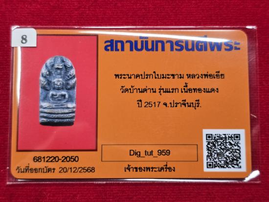 เคาะเดียวแดง พระนาคปรกใบมะขาม หลวงพ่อเอีย วัดบ้านด่าน รุ่นแรก เนื้อทองแดง ปี 2517 พร้อมบัตรรับรอง