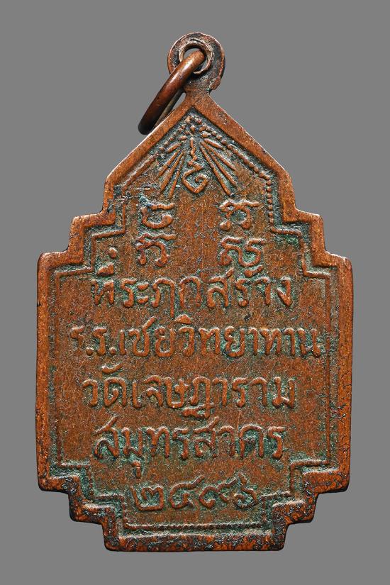 รายละเอียด เหรียญหลวงพ่อเชย วัดเจษฎาราม จ.สมุทรสาคร เนื้อทองแดง ปี 2496 ห่วงเชื่อมเก่า