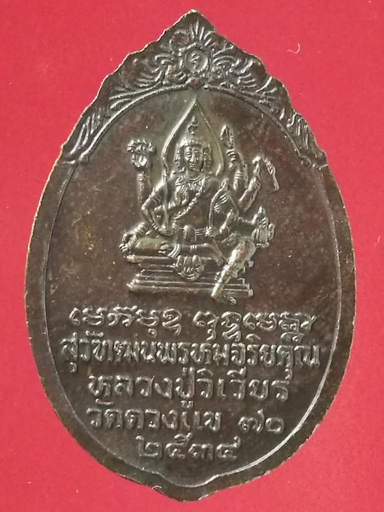 เหรียญหลังพระพรหม ระวิมลธรรมญาณ (ปู่วิเวียร ฐิตปุญฺญเถร) วัดดวงแข กรุงเทพมหานคร ปี ๒๕๓๔