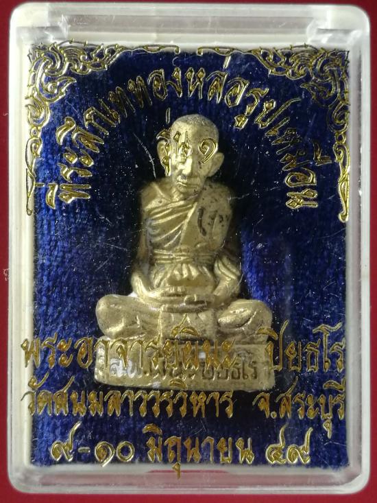 พระรูปหล่อรุ่นแรก หลวงพ่อผินะ ปิยธโร วัดสนมลาว จ.สระบุรี ปี ๒๕๔๙ เนื้อทองผสม