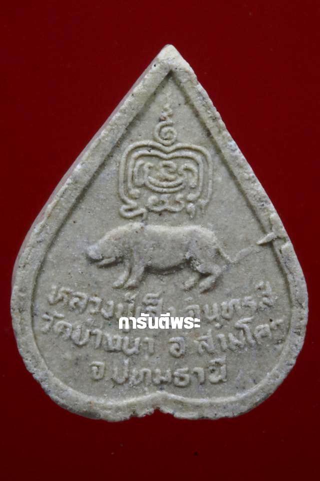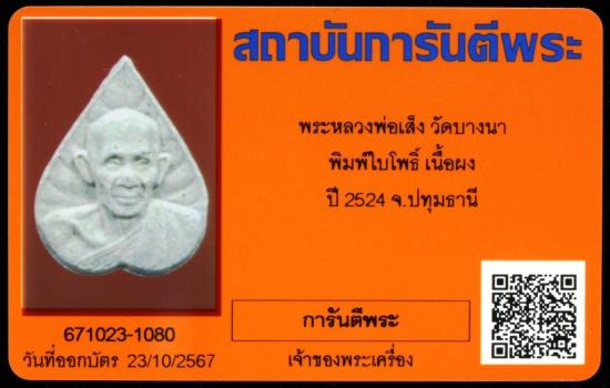 พระหลวงพ่อเส็ง วัดบางนา พิมพ์ใบโพธิ์ เนื้อผง ปี 2524 จ.ปทุมธานี พร้อมบัตรรับรอง