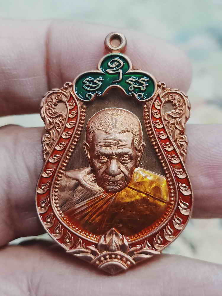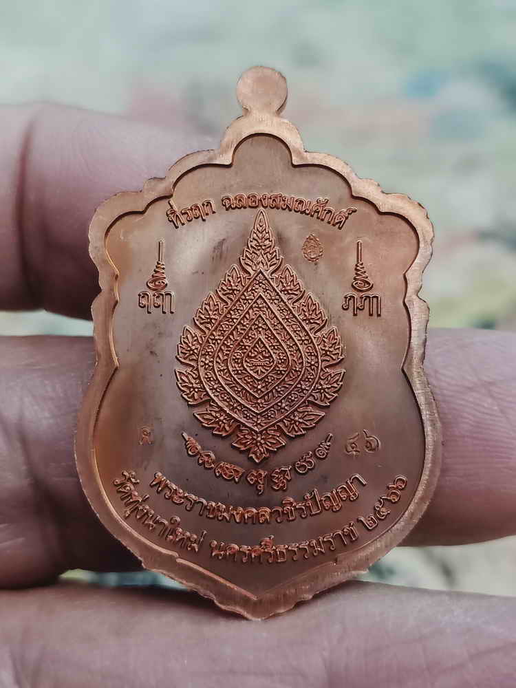 วัดใจ 100 เหรียญเสมาฉลองสมณศักดิ์ หลังพัดยศ หลวงปู่อิ่ม วัดทุ่งนาใหม่ จ.นครศรีธรรมราช 2566 ทองแดงผิวไฟ ลงยาขอบ จีวร หมายเลข 46 กล่องเดิม |