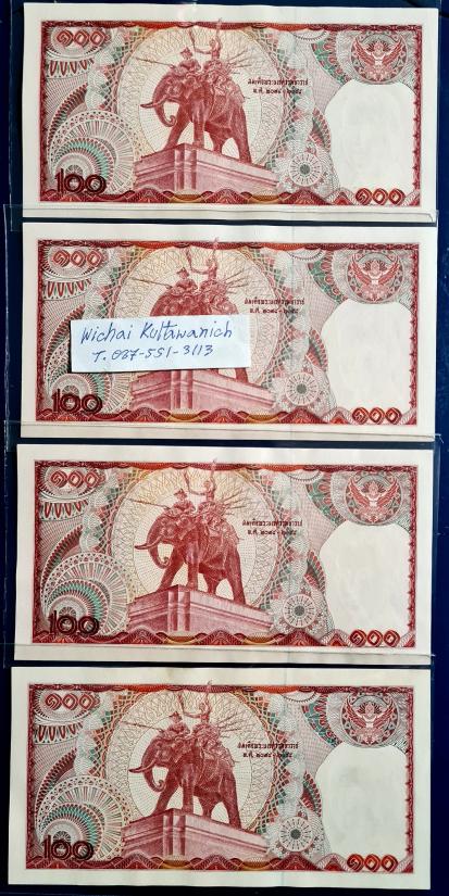ธนบัตร ร.9 แบบ 12 ชนิดราคา 100 บาท ช้างแดง สวยๆ หมวดเสริมพิเศษ S-พ 4 ใบ |
