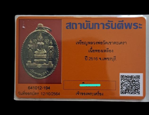 รายละเอียด เหรียญหลวงพ่อวัดเขาตะเครา หลังยันต์ตาหมื่น จ.เพชรบุรี ปี 2516 สภาพสวยเดิม พร้อมบัตรับรอง G-PHA