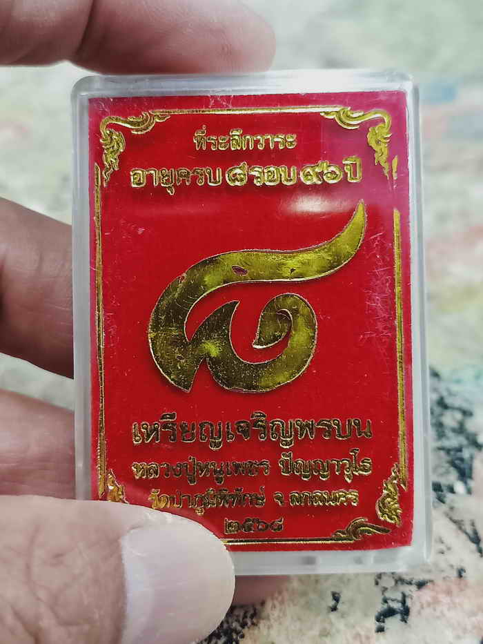 วัดใจ 100 เหรียญเจริญพรบน 8 รอบ หลวงปู่หนูเพชร ปัญญาวุโธ วัดป่าภูมิพิทักษ์ สกลนคร 2568 ทองทิพย์ หมายเลข 212 กล่องเดิม |
