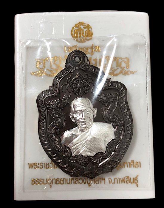 หลวงปู่มหาศิลา อายุวัฒนะมงคล81 มังกรคู่ เนื้อนวะหน้ากากเงิน เลข649กล่องเดิม จมูกโด่งๆ |