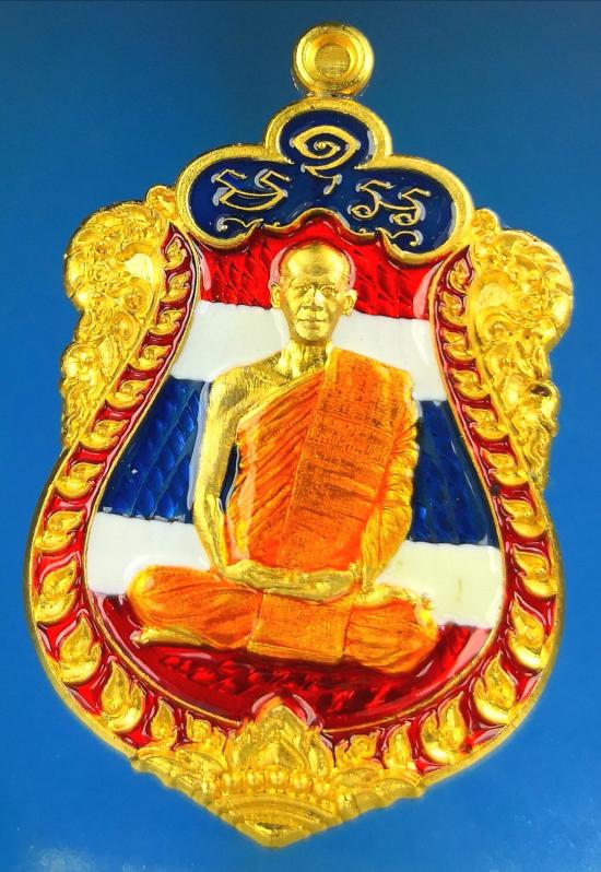 1300-เคาะเดียว เหรียญเสมาอุดมทรัพย์ พระอาจารย์ต้อม วัดท่าสะแบง ชุดกองบุญ เนื้อกะไหล่ทอง ลงยาธงชาติ ขอบแดง ชุ้มน้ำเงิน ลงยาจีวร เลข๑๓๔ เสมาใหญ่พิมพ์นิยม |