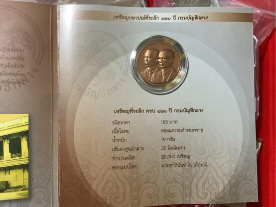 (เคาะเดียวแดง) เหรียญที่ระลึก ครบ 120 ปี กรมบัญชีกลาง ชนิดราคา 120 บาท จำนวน 2 เหรียญ