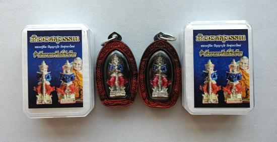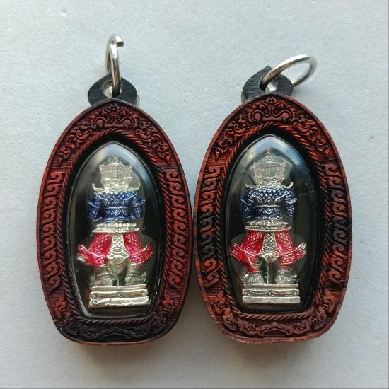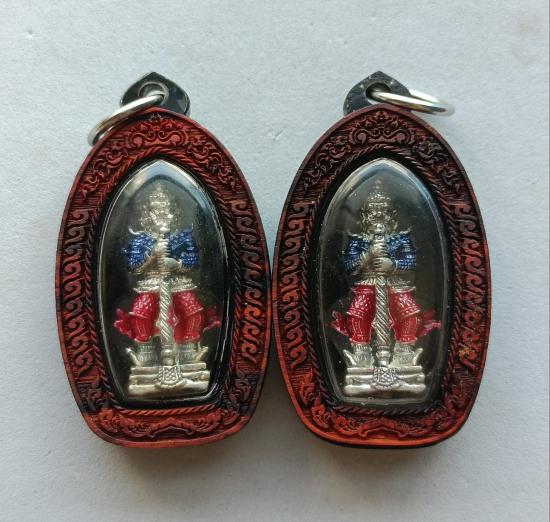 วัดใจเคาะเดียวแดงจ้า รูปหล่อท้าวเวสสุวรรณ หลวงปู่อิ่ม วัดทุ่งนาใหม่ เนื้อชุบเงินลงยา เลี่ยมกรอบไม้สั่งทำพิเศษ จำนวน2องค์ เคาะเดียวแดงจ้า |