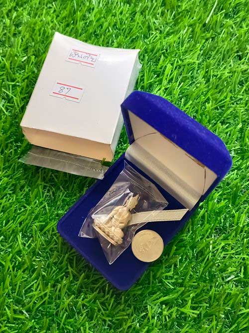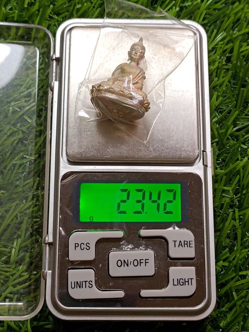" วัดใจ เคาะเดียวแดง " พระกริ่งแสงอริยทรัพย์ หลวงปู่แสง วัดโพธิ์ชัย จ.นครพนม ปี 62 ทันหลวงปู่ปลุกเสก เนื้อเงินดิบ (เนื้อเงินแท้ ราคาจอง 3,000) หมายเลข 87 หนักประมาณ 23.xx กรัม โค๊ตนำฤกษ์ ขนาดห้อยคอสูง 3.5 ซม.โดยประมาณ ขออนุญาตถ่ายและชั่งผ่านซองพลาสติกใสนะครับ กล่องเดิมกำมะหยี่