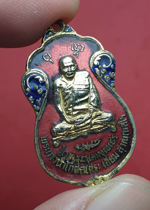 เหรียญหลวงปู่เอี่ยม วัดหนังฯ หลังยันต์สี่ เนื้อกะไหล่ทองลงยาแดง ปี2515 (วัดโคนอนสร้าง) |