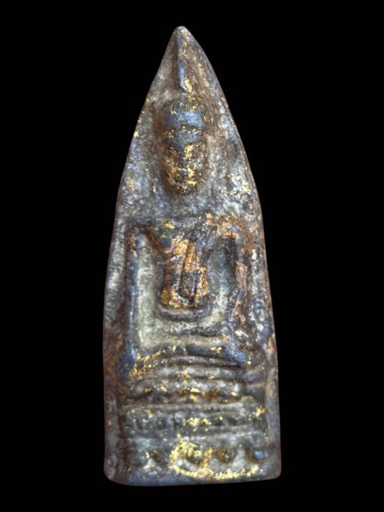 พระกรุเนื้อชินเก่า ไม่ทราบที่ ลักษณะเป็นพระกรุเนื้อชินเดิม ฟอร์มพระกรุทรงมาตรฐาน องค์พระนั่งปางสมาธิภายในซุ้ม ผิวเนื้อชินเก่าแห้งจัด มีคราบกรุและคราบอายุธรรมชาติทั่วองค์ ด้านหน้าปรากฏคราบทองเก่าติดอยู่บางส่วน สะท้อนการใช้งานและการบูชาในอดีต ไม่ผ่านการล้างหรือแต่งผิว เส้นสายองค์พระยังพอเห็นเค้าโครงเดิม สภาพโดยรวมเป็นพระกรุเก่าแท้ตามสภาพ เหมาะสำหรับผู้ที่ชื่นชอบพระกรุเนื้อชินเดิม ๆ เก็บบูชาหรือสะสม พิจารณาตามภาพเป็นหลัก