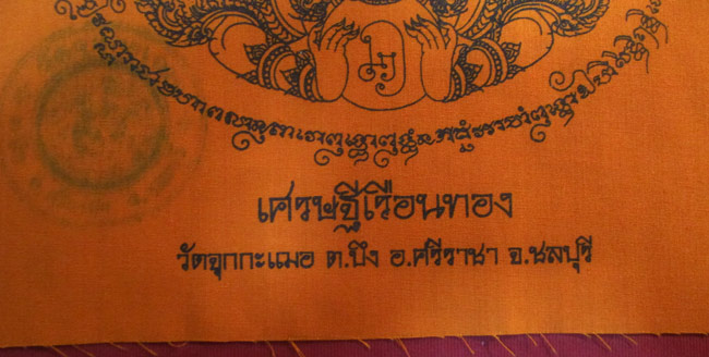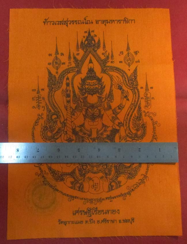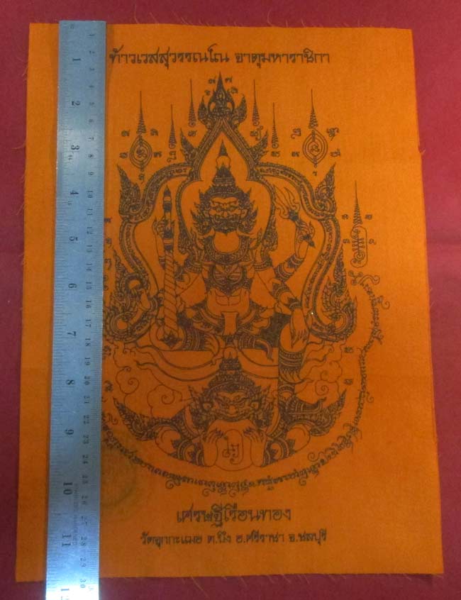 ผ้ายันต์ ท้าวเวสสุวรรณ จาตุมหาราชิกา วัดจุกกะเฉอ ต.บึง อ.ศรีราชา จ.ชลบุรี ครับ (พระบ้าน ครับ) |