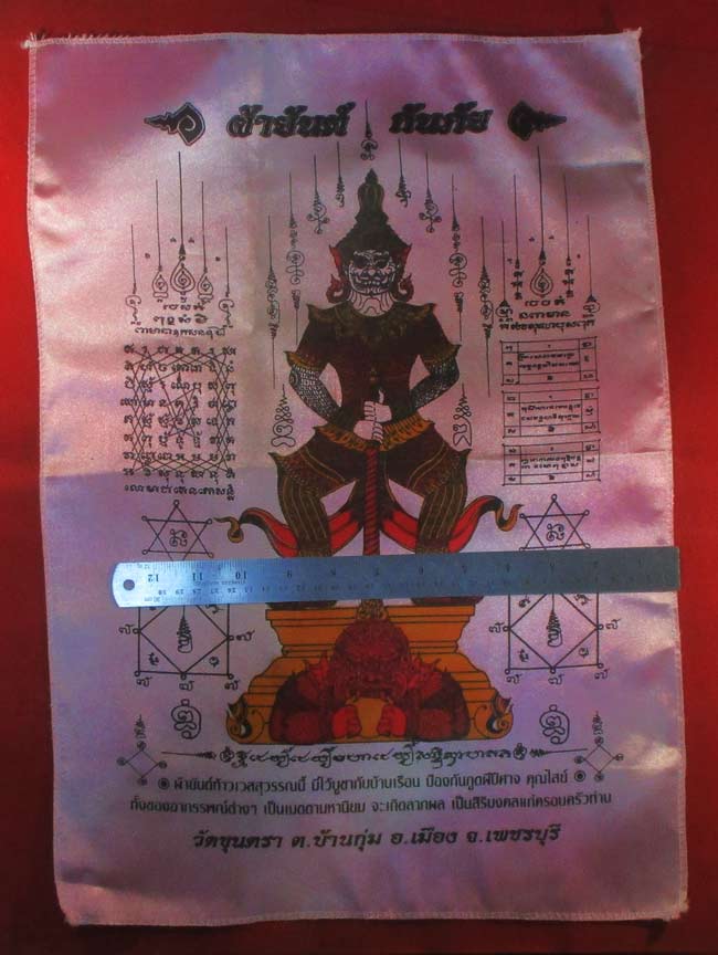 ผ้ายันต์ ท้าวเวสสุวรรณ วัดขุนตรา อ.เมือง จ.เพชรบุรี ครับ