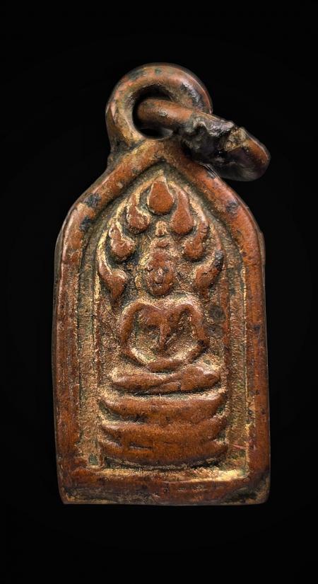 รายละเอียด พระปรกใบมะขาม เนื้อทองแดงกะไหล่ทอง หลวงพ่อดิ่ง บางวัว จารเต็มสูตร
