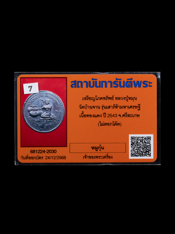 เหรียญหลวงปู่หมุน วัดบ้านจาน พร้อมบัตรรับรองจากเว็บ ผมไม่ทราบที่ ยี่ห้อรุ่นครับ พระรังเก่า ชุดนี้ผมไปเหมาบ้านที่กรุงเทพฯมาได้มาหลายอย่าง ทยอยลงครับ วัดใจเท่าไหนเท่านั้นครับ