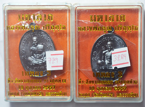 เหรียญหลวงพ่อคูณ วัดบ้านไร่ รุ่น มหาลาภ เททอง วาระ 3 ครั้งสุดท้าย ปี 57 เนื้อทองแดงรมดำ 2 เหรียญ เลข 729+3289