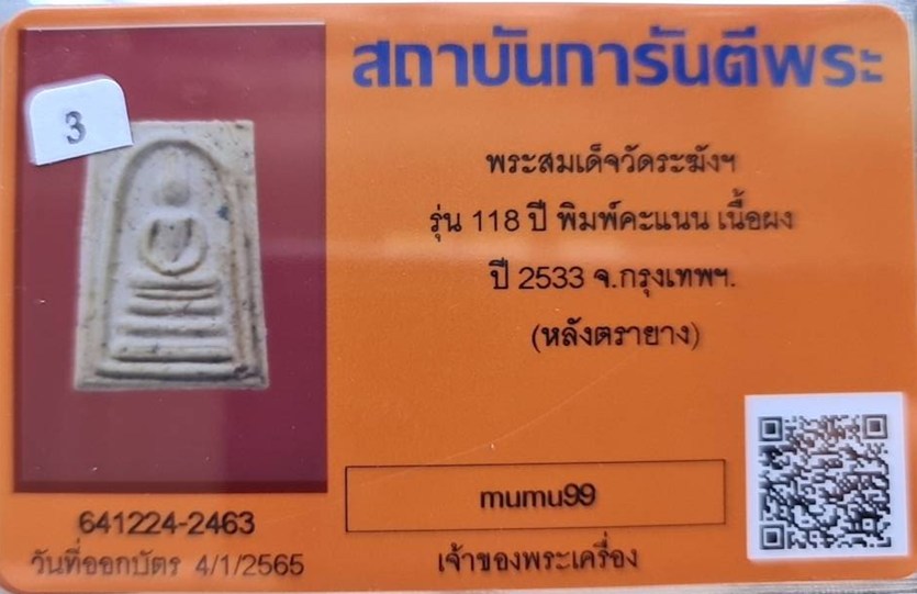 ## สมเด็จวัดระฆัง อนุสรณ์ 118ปี พ.ศ.2533 พิมพ์คะแนน "พระสวยเดิมไม่ผ่านการใช้.หลังปั้มตรายาง...พร้อมบัตรรับรอง.""รับประกันแท้ตลอดฃีพและแท้ตามมาตรฐานสากล....... อนาคตดี ถูกๆเลยครับ.... ราคายังไม่แรง....ไปออกต่อได้เลยครับ...แท้...ถูก...ดี...น่าเก็บมาก. |