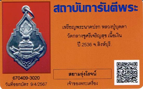 ชื่อพระเครื่อง (1ใน300 เหรียญ)"รุ่นนี้กำลังดังในTikTok ปืนสับไม่แตก"...เหรียญพระนาคปรก หลวงปู่บุดดา(เนื้อเงิน) พร้อมบัตรรับรองG-PRA