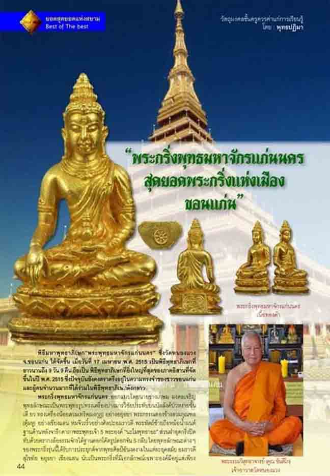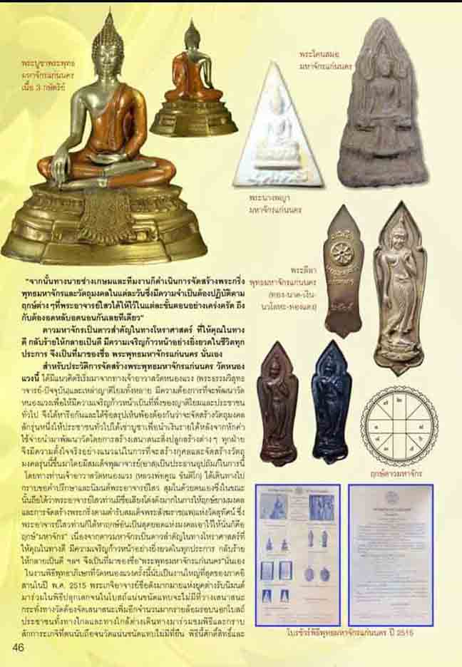 วัดหนองแวง จ.ขอนแก่น จัดสร้างขึ้นในปี พ.ศ.2515 โดยในพิธีนั้นมี สมเด็จพระวันรัต (สมเด็จป๋า วัดโพธิ์) เป็นประธานจุดเทียนชัย และมีพิธีพุทธาภิเษกถึง ๙ วัน ๙ คืนด้วยกัน และได้มีพระเกจิอาจารย์ชื่อดังมาร่วมปลุกเสกหลายท่านด้วยกัน เช่น. ๑ พระอาจารย์ฝั้น อาจาโร วัดป่าถ้ำขาม ๒ หลวงปู่ดุลย์ อตุโล วัดบูรพาราม ๓ หลวงพ่อผาง จิตตคุตโต วัดอุดมคงคาคีรีเขตต์ ๔ หลวงพ่อแพ วัดพิกุลทอง ๕ หลวงพ่อดี วัดศรีสำราญ ๖ หลวงพ่อหนูอินทร์ วัดพุทธคยา ๗ หลวงพ่อลมูล วัดพุทธวงษา แห่ง นครเวียงจันทร์ ๘ หลวงพ่อสิงห์ วัดกุญชรวราราม ๙ หลวงพ่อชาย วัดสังข์ทอง เป็นต้น |