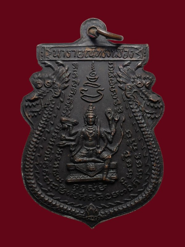 ชื่อพระเครื่อง เหรียญนารายณ์ทรงเมือง หลวงพ่อพรหม วัดขนอนเหนือ จ. พระนครศรีอยุธยา ปี 2521 เนื้อทองแดง