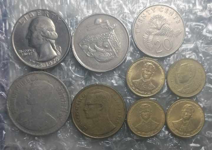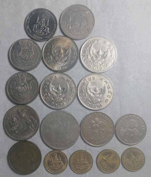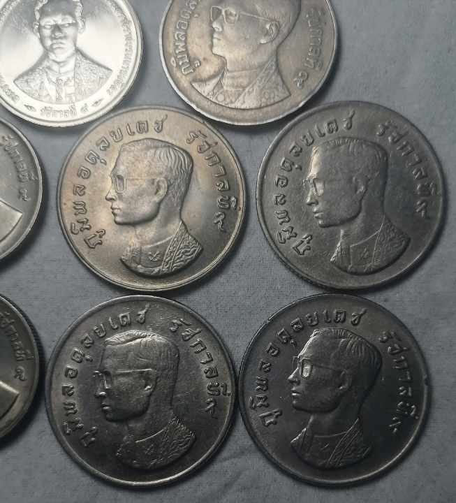 ชุดแรก เหรียญ ๑ บ.หลังครุฑ คัดสวย ๆ 4 เหรียญ ๒ + บ.งานปีต้นไม้ 2 เหรียญ + ๒ บ.กาญจนาภิเษก 1 เหรียญ + เหรียญ ๕ บ.ปี ๒๕๓๐ 1 เหรียญ