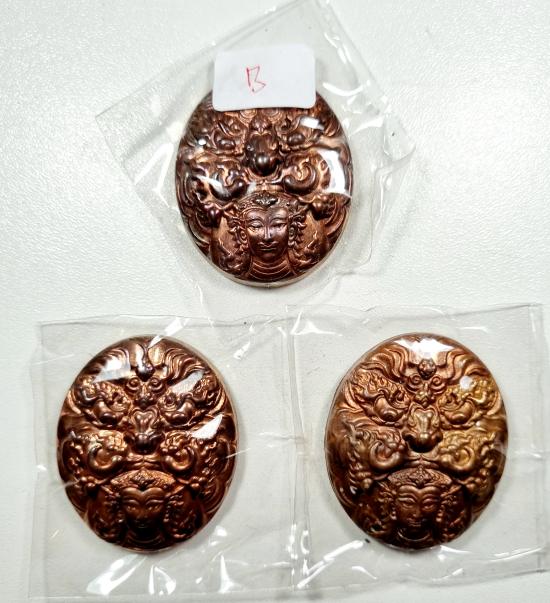เหรียญพญาราหู พระอาจารย์ประสูติ วัดในเตา เหรียญเทพราหู เนื้อสัมฤทธิ์แดงกรรมการ ฝังเม็ดกริ่ง 3องค์ (B) |