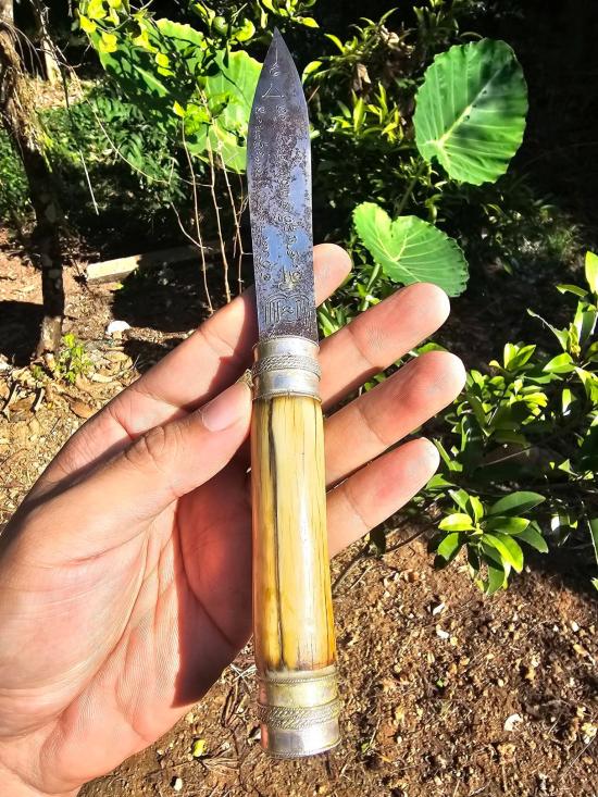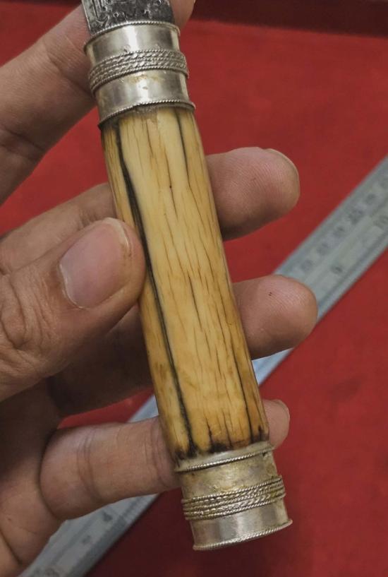 มีดหมอด้ามงาช้างขนายเเท้ขนาด9นิ้ว ตัวมีดเจ้าของนำมาใส่ที่หลังสั่งทำตัวรัดเงินเเท้