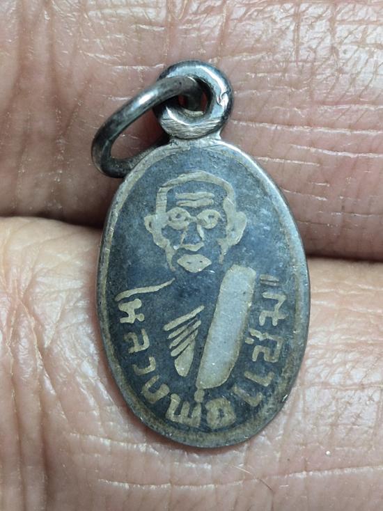 หลวงพ่อเเช่ม เหรียญเม็ดเเตง วัดฉลอง เนื้อเงินลงถม จ.ภูเก็ต ไม่ทราบปี