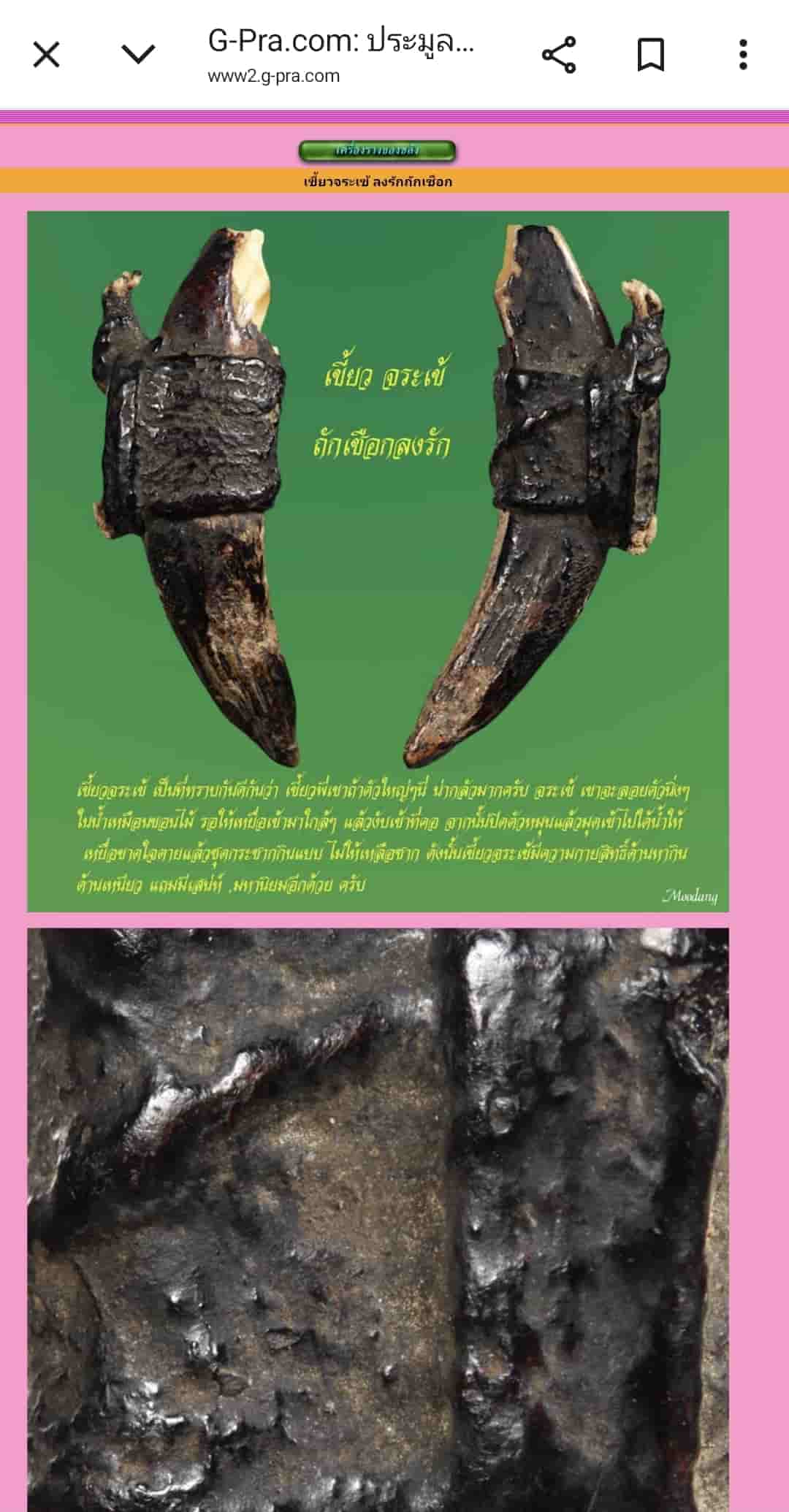 ขออนุญาตอ้างอิง เขี้ยวอีกอันที่ได้แกะเชือกและถ่ายลง YouTube ไว้เนื่องจากได้มาพร้อมกัน # อันใน YouTubeขายไปแล้ว